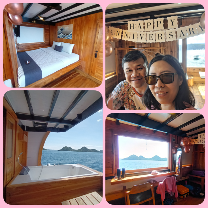Untuk melihat komodo dan menjelajah pulau-pulau cantik di Labuan Bajo ada 2 pilihan. Satu hari dengan menggunakan speed boat atau 3 hari menginap di atas kapal phinisi. Kami pernah menginap di kapal saat berwisata ke Halong Bay Vietnam Desember 2019 (part 3 – Halong Bay). Karena pengalaman tersebut menyenangkan, maka kami memilih menginap di kapal juga untuk Labuan Bajo ini.