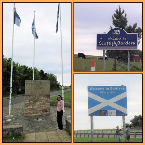 Setelah driving sekitar 4 jam, kami akhirnya sampai di perbatasan Inggris dan Skotlandia. Di sini kami sempat foto2 dengan beberapa icon penanda perbatasan. Tidak ada pemeriksaan apa2 di perbatasan ini, bahkan jika tidak memperhatikan bisa jadi perbatasan ini tidak terasa dan tidak terlihat. Bisa driving terus saja. Di samping kanan, ada pemandangan laut. Sepertinya akan bagus dinikmati saat menyetir dari arah berlawanan, nanti saja pas pulangnya.