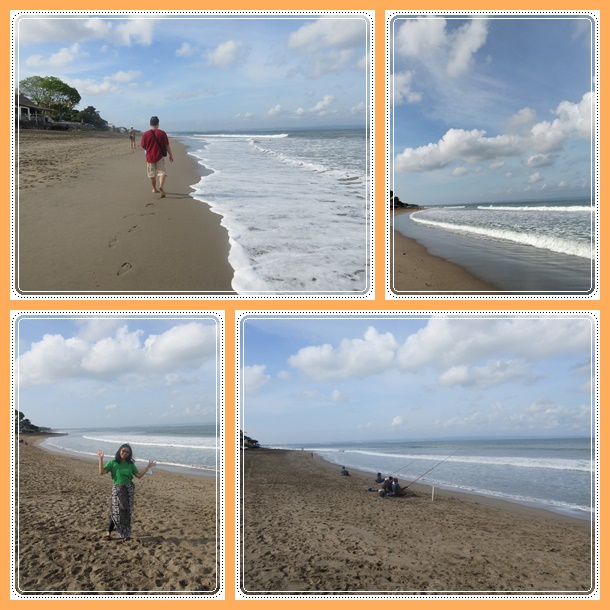 Pantai ini dapat ditempuh jalan kaki dari akomodasi kami di Batu Belig. Sebetulnya bisa melihat sunset di pantai ini, namun karena waktu yang terbatas, kami mengunjungi pantai ini di pagi hari. Pantainya luas dan sepi, natural sekali. Ada beberapa orang yang jogging di pantai. Ada juga yang memancing dengan duduk di tepi pantai, unik sekali. Kami tanya, memangnya bisa dapat ikan dengan memancing di pinggiran laut seperti itu ? Katanya bisa dan banyak. Keren juga berarti untuk snorkeling nih harusnya, hehe..